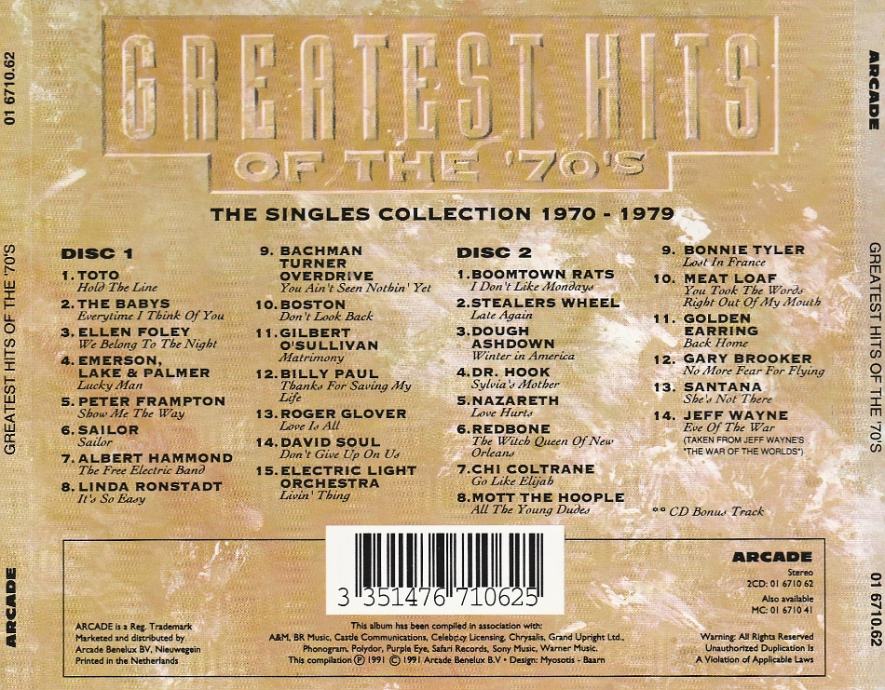 Various – Greatest Hits Of The '70's - The Singles Collection (2x CD)