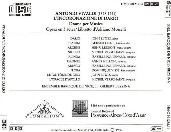 Vivaldi - John Elwes . Henri Ledroit . Gérard Lesne . Michel Verschaeve . Isabelle Poulenard . Agnès Mellon . Dominique Visse . Ensemble Baroque De Nice . Gilbert Bezzina – L' Incoronazione Di Dario