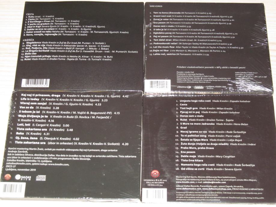 Gre za albume Ptič, Koncert (2cd + dvd), Cesta, Drevored (nov),, Kaj naj ti prinesem draga (nov), kompilacija Umjesto koga roža cveti (nov) ter Cankarjev dom 1992-2011 Live. Prav tako je na voljo tudi kompilacija Kreslinčice (2cd), ki pa ni na slikah...