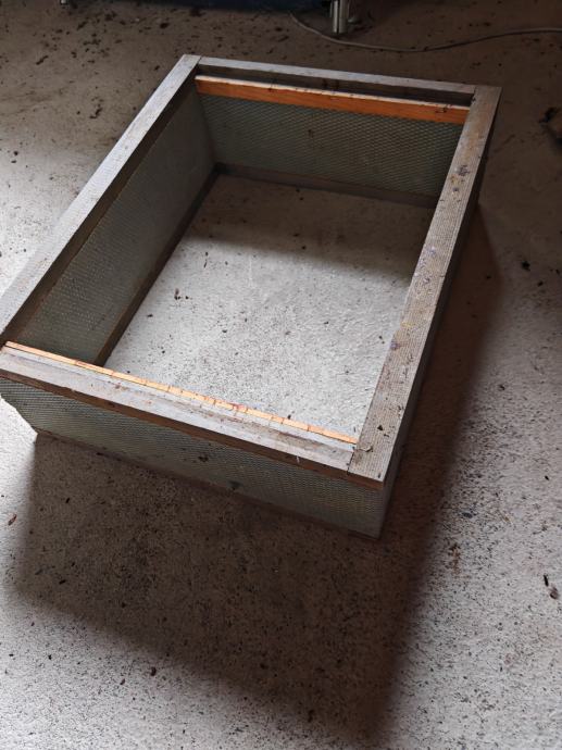 LR PANJ 2/3 OKVIRJI IZ STIRODURA, ojačani s lesenimi robovi zgoraj in spodaj, nekateri, ki so še ostali, obiti s tiskarsko pločevino, POKROV , PODNICA, 2/3 satni okviri, rabljeni, sterelizirani- 0,3 EUR, večje število bočnih letvic za satne okvire - 0,15 €, begalnice