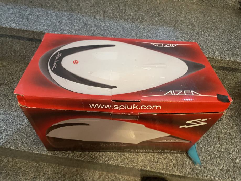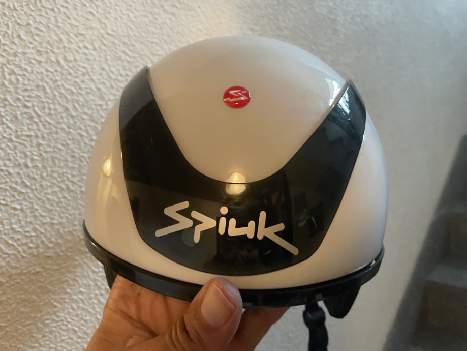 Kronometrska čelada Spiuk Aizea, bele barve, samo 2x rabljena, z vsemi dodatki, ki so bili v škatli (podaljšek zadaj, zaščitna šipa za oči).