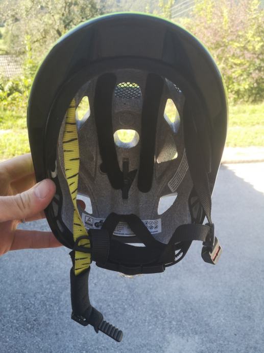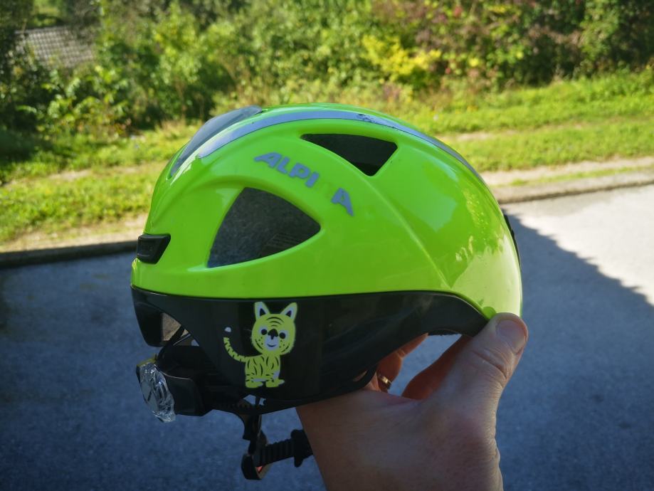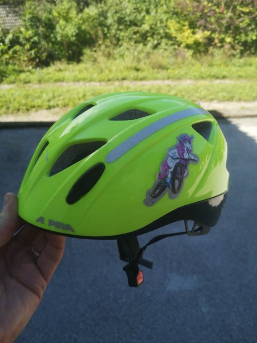 Super nastavljiva otroška čelada, z rdečo lučko na zadnji strani. Lepotne poškodbe, funkcionalno nepoškodovana. Za glavo obsega 45-49 cm, starost priblizno 5 do 7 let.