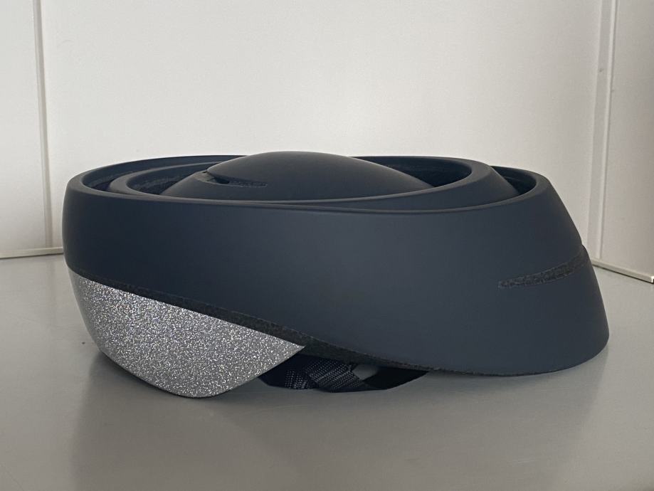 Podam novo čelado Closca helmet loop. Inovativna zložljiva čelada. Z zlaganjem se zmanjša volumen za 40 %. Žal je za mojo glavo prevelika. Kontakt 03 221 383.
