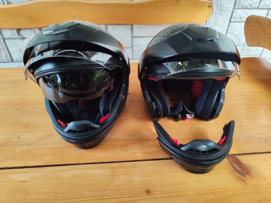 Čeladi NOLAN N 40 FULL, velikosti L in M, brezhibni in lepo ohranjeni. Vedno sta bili nošeni s podkapo, notranja obloga pa je čista in nepoškodovana. Cena za posamezni kos je 100 €, obe skupaj prodam za 180 €.
