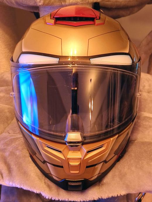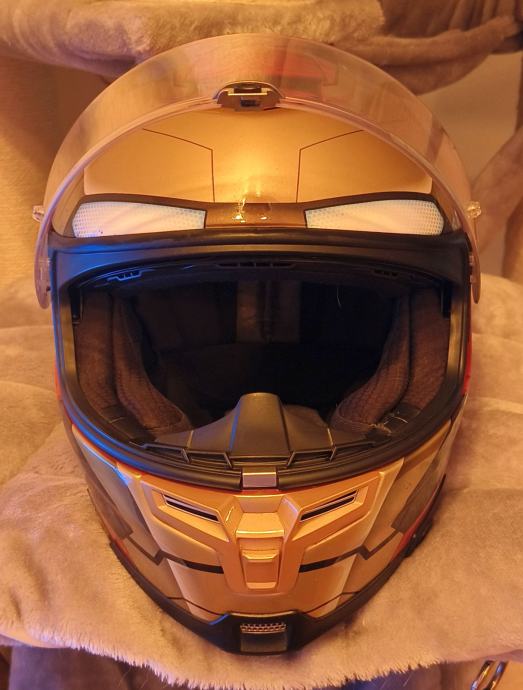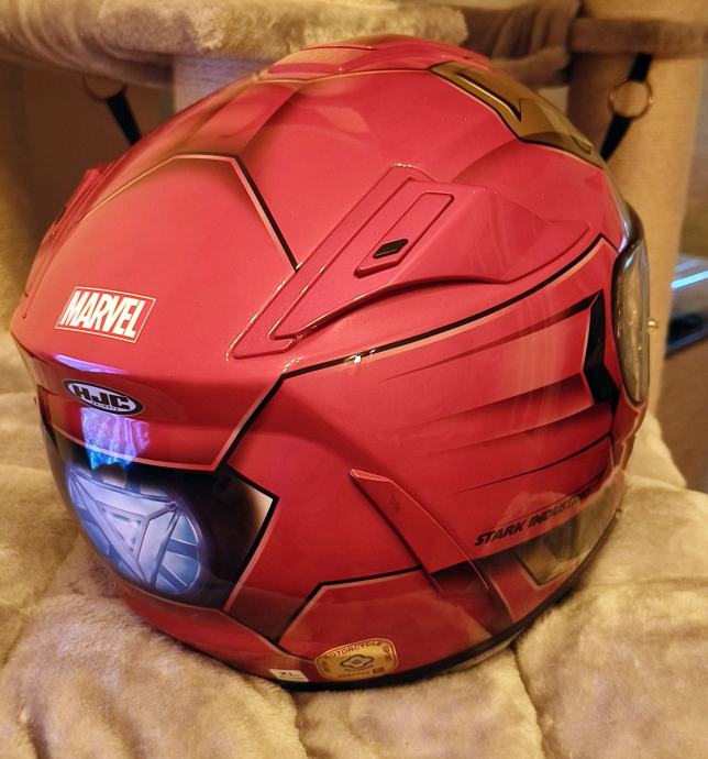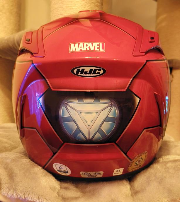 Velikost XL, obseg moje glave je 59 cm, prav tako mi ustreza velikost L. Brez prask, dobro ohranjen, redek model Iron Mana od Marvela, ima zaščito pred rosenjem, priložena je originalna škatla in platnena torbica za shranjevanje.