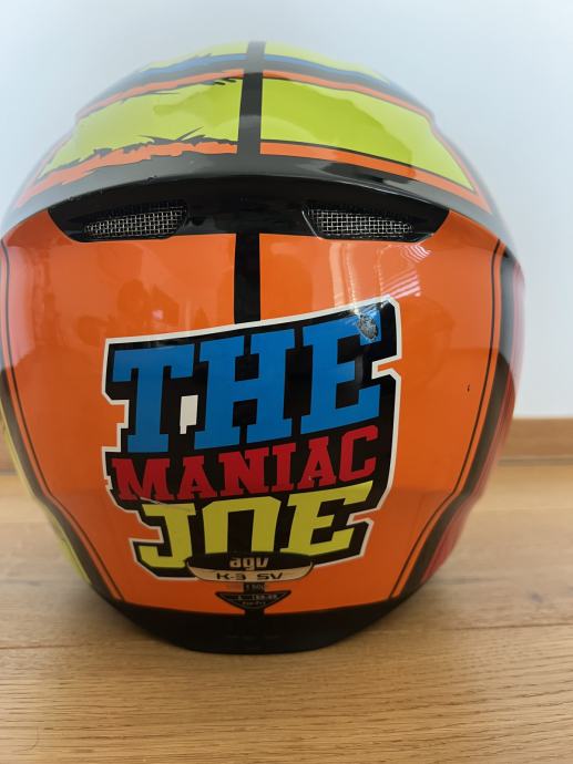 Prodam motoristično čelado AGV K-3 SV (The Maniac Joe), velikost L (59-60). Čelada ima vgrajeno notranjo sončno zaslonko. Podloga je pralna.