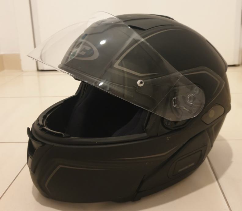 Prodamo motoristično preklopno čelado HJC, podkapo in ščitnik oboje velikost L. Čelada je bila kupljena v letu 2018, nošena 4 leta. Prodaja se zaradi neuporabe. Čelada je preklopna s funkcijo bluetooth. Podkapa in ščitnik sta iz polartec materiala. Oboje odlično ohranjeno. Ob nakupu priložimo tudi vrečo za shranjevanje čelade in dodatni vizir.