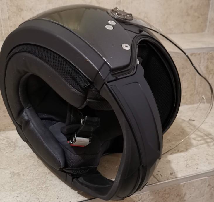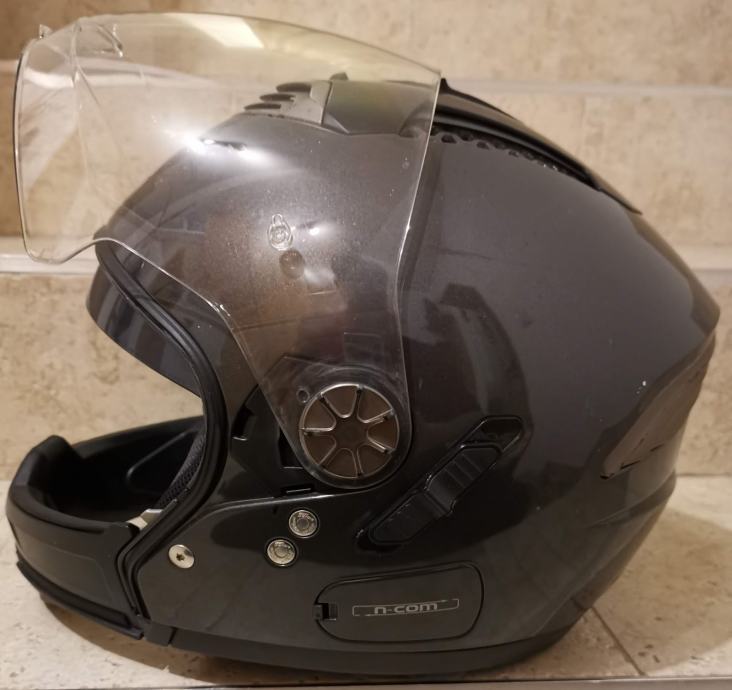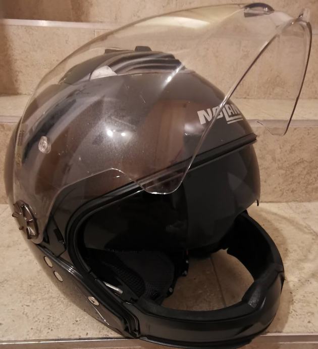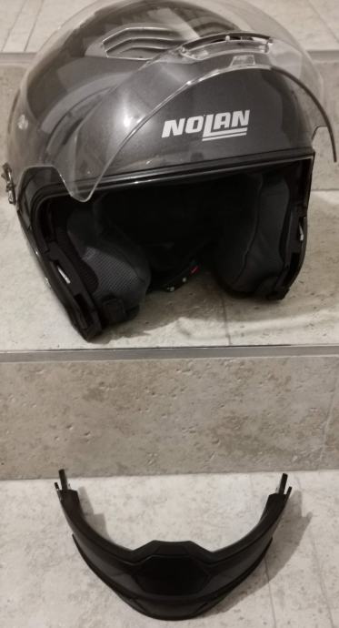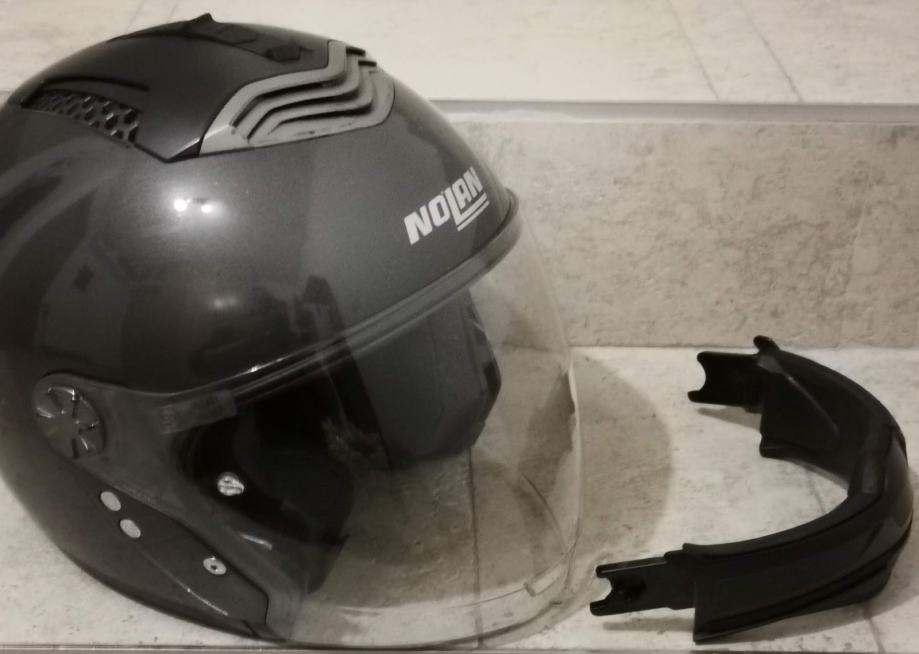 Nolan čelada velikost XXS ima tudi sončni vizir, lahko pa se tudi sname bradni del čelade in je tako odprta.