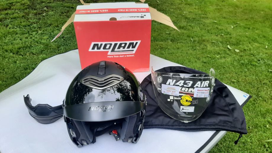 Čelada NOLAN N 43 AIR, se lahko uporablja z vizirjem ali brez in s predbradnim ščitem. Čelada je zelo malo rabljena.