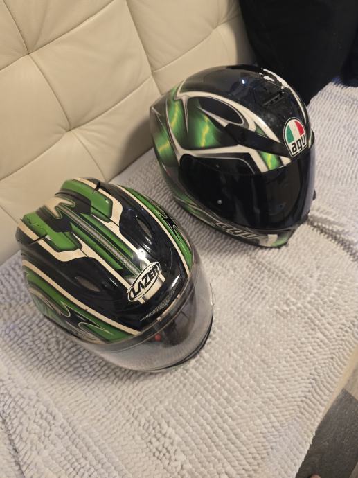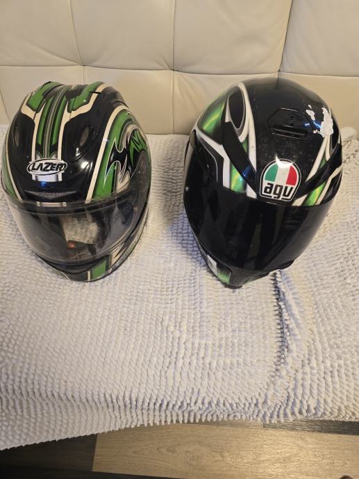 120 eu, čelade so kot je razvidno na fotografijah v solidnom stanju, AGV je padla iz balance na tla in posledično je tudi rahlo poškodovan lak, o zadnji ceni pa pri ogledu in preizkusu...!!!