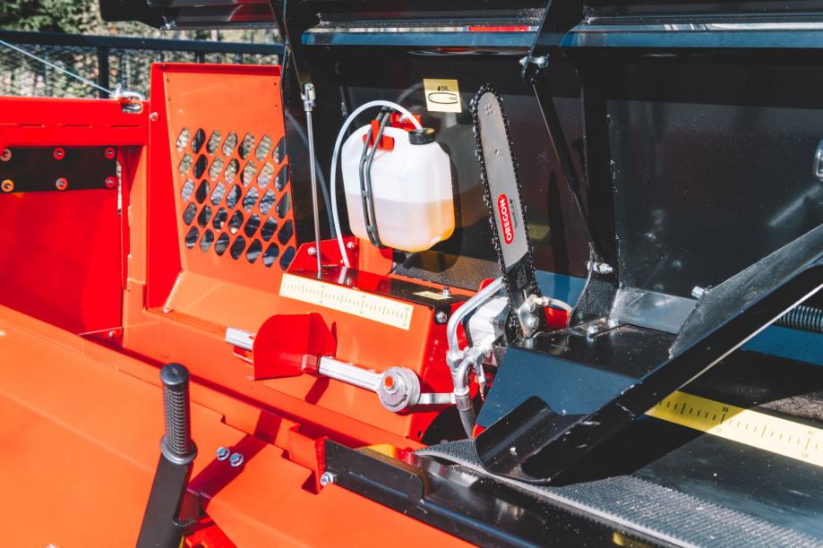 Enostavno upravljanje Podajalnik, žaga in cepilnik se upravljajo z enoročno kombinirano ročico. Postopek ločevanja se sproži samodejno.
