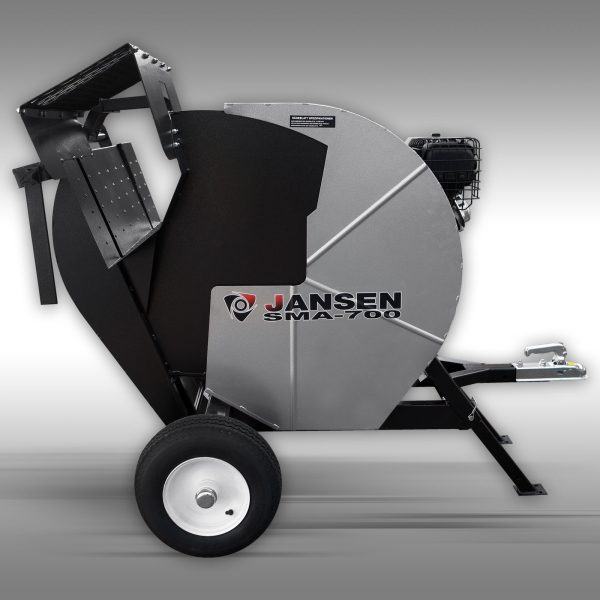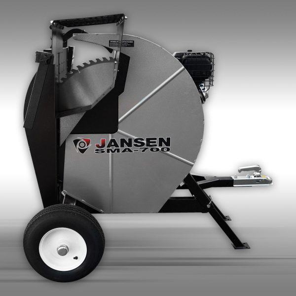 Previsna motorna krožna žaga za drva Jansen SMA-700 z močnim 13 konjskim motorjem in žagnim listom premera 700mm. Žaga je pritrjena na konstrukciji, ki omogoča priklop na vozila in s tem lahko in varno prevažanje. Motor ima ročni in elektronski zagon. Delovno mizo je mogoče v levo podaljšati in s tem zagotoviti večjo oporo daljšim obdelovancem. Žaga je opremljena z močno in stabilno maso oziroma z nastavljivim omejevalom za žaganje iste dolžine. Za čvrst in varen oprijem obdelovanca k koritu služi vpeta roka.