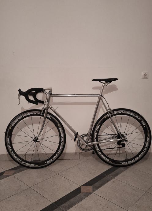 Cestno kolo Bottecchia xl...letnik 85"....pred leti restavriran, okvir peskan in kromiran, menjava wheelseta z Mavic cosmic SL karbon, sedež selle Italia, komponente Shimano RSX in Campagnolo menjalnik ter