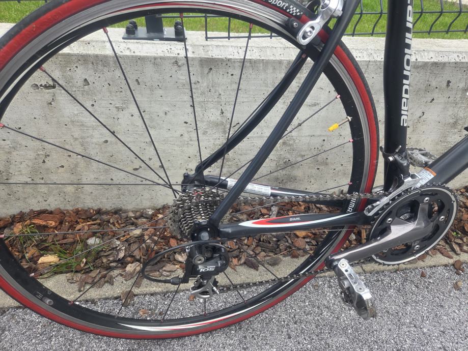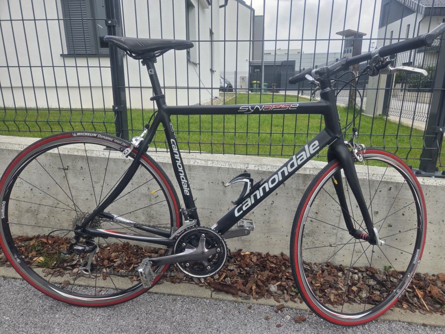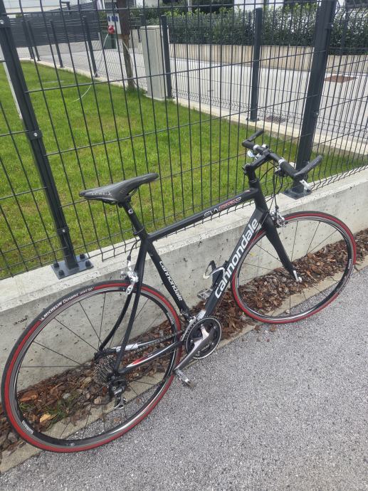 Prodam zelo dobro ohranjeno cestno kolo Cannondale Synapse (fitens), velikosti L (velikost 175-185 cm), ALU okvir, prednje vilice karbon, vsa oprema Shimano 105 (prednji in zadnji menjalnik ter zavore), Gonilka: 30-38-50, Kaseta: 12-27, ALU obroči Shimano WH-RS10 28 col (700C) , pnevmatike Michelin Dynamic sport, Shimano SPD pedala, nosilec za bidon Elite.