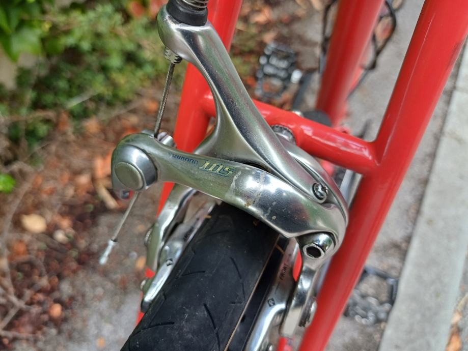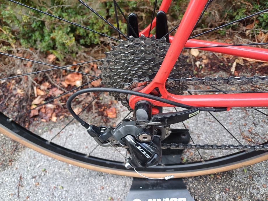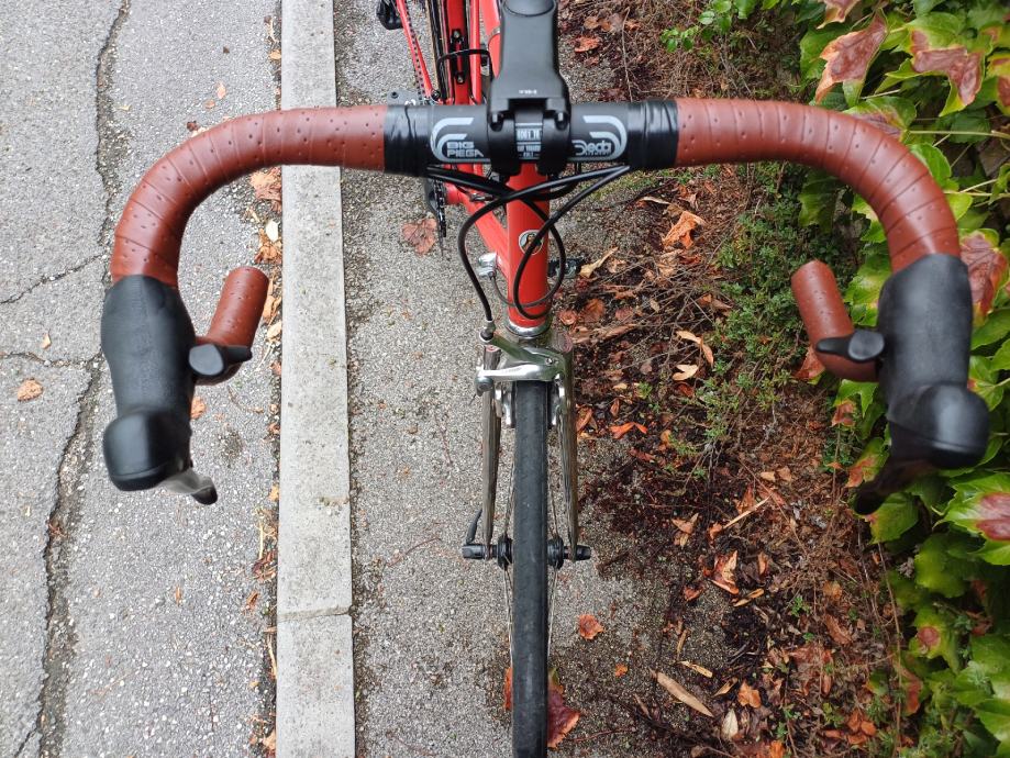 Restavriranje cestno jekleno cesto kolo velikost 62(xl). Prašno barvano, oprema shimano 105. 2x 10. Gonilka m-wave 34-50, kaseta 11-30. Prestavne ročice microshift centos