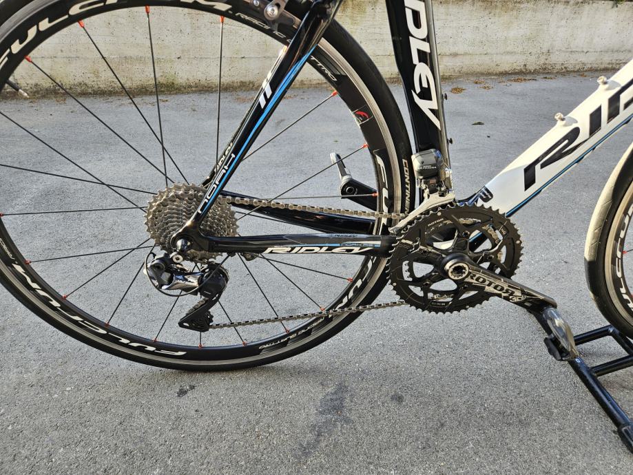 Prodam karbonsko aero cestno kolo Ridley Noah Ultegra DI2. Prevoženih samo cca 10000 km, redno servisirano, ... Nameščena je elektronska grupa Shimano Ultegra DI2 + ROTOR gonilka (52/36). Zadnji menjalnik 11 reden, kaseta 11-34. Obroči Fulcrum Racing Quatro. Velikost okvirja S (od cca 170 - cca 180 cm). Kolo vredno ogleda, menjava ni možna. Kličite samo resni.