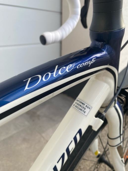 Zensko cestno kolo Dolce Comp, oprema 105, karbonska sedezna opora, sprednje vilice in zadnji trikotnik.