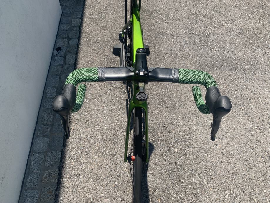 PodrobnostiStanjeRabljeno – dobro stanje* Kolo je bilo sestavljeno v 08/2021. Okvir je iz Kitajske* V maju so zamenjali sprednji zavorni disk z oblogami in pnevmatiko.* Prav tako je bila zamenjana tudi pedalna gred 172,5 mm z ležajem.* Nova veriga Red in originalni verižni okvir sta prav tako vključena.* Desna ročica je opraskana, vendar popolnoma funkcionalna.* Nova trakasta prevleka za krmilo* Menjalnik Sram Red axs 12-stopenjski 48/35-10/33 s keramiko speed* Roval kolesa z DT Swiss 240 spredaj 50, zadaj 64* Vsi dodatki karbonski: nosilec bidona in sedež* Dolžina krmila 120 mm* Brez garancije in jamstvaMožno zamenjati