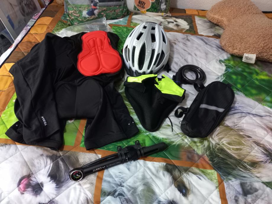 kolo, čelada, tlačilka, 3x kolesarske hlače, rokavice, torbica, ključavnica, podložena prevleka za sedež.... vse novo