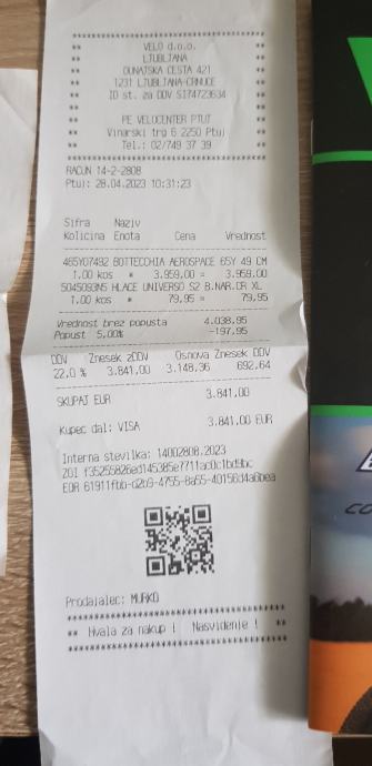 Pozdravljeni.Prodaja se cestno kolo BOTTECCHIA AEROSPACE 65 Y 49 CM kupljeno 28.04.23 zaradi neuporabe.Je kot iz trgovine brez ene same praske in zelo malo vozno.Vsi računi narejen prvi servis.Vsa oprema je ULTEGRA.Kolo je primerno za višino od 165 cm pa do 180 cm.Vzadaj ima 12 zobnikov.