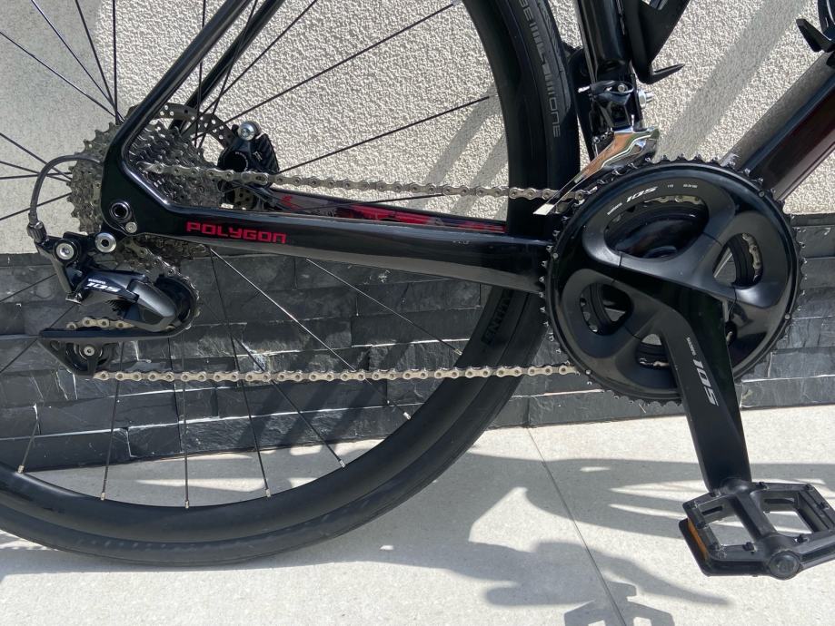 Prodajam rabljeno cestno kolo Polygon Strattos S7D letnik 2022 s karbonskim okvirjem velikosti M. Kolo ima 27.5-palčna kolesa in je idealno za zahtevne kolesarske navdušence.