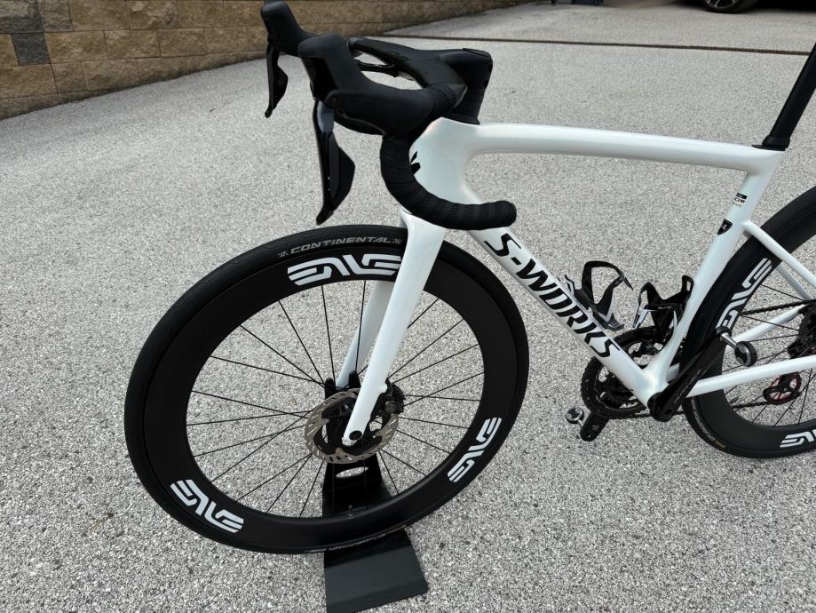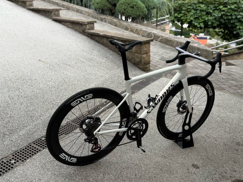 Prodam skoraj novo kolo, malo voženo letnik 2024, velikost M 54, krmilo 400x100, Garnitura Schimano DuraAce , obroči ENVE. perla bela barva Custom 051624683}