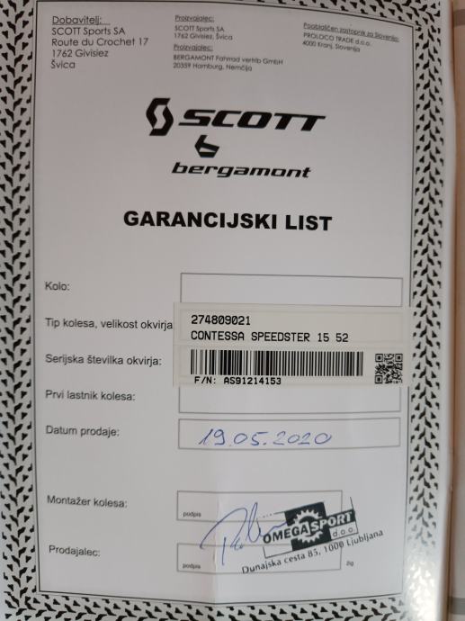 Prodajam žensko cestno kolo Scott speedster contessa 15 v velikosti S.