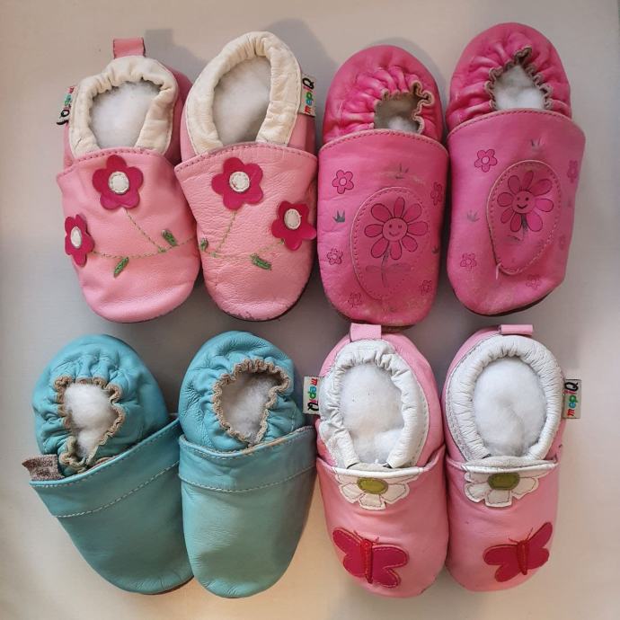 Prodajam usnjene otroške copatke z različnimi motivi, 8€ na par copatkov. Odprtina za nogo je elastična.