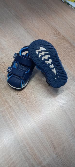 Zelo malo rabljeni usnjeni poletni čeveljčki v št 20. So malo večji, bolj primerni za št. 21/22. Lepe modre barve, zapnejo se na ježka. Podplat je ortopedski. Čeveljčki so oprani in očiščeni (takšni kot so na sliki).