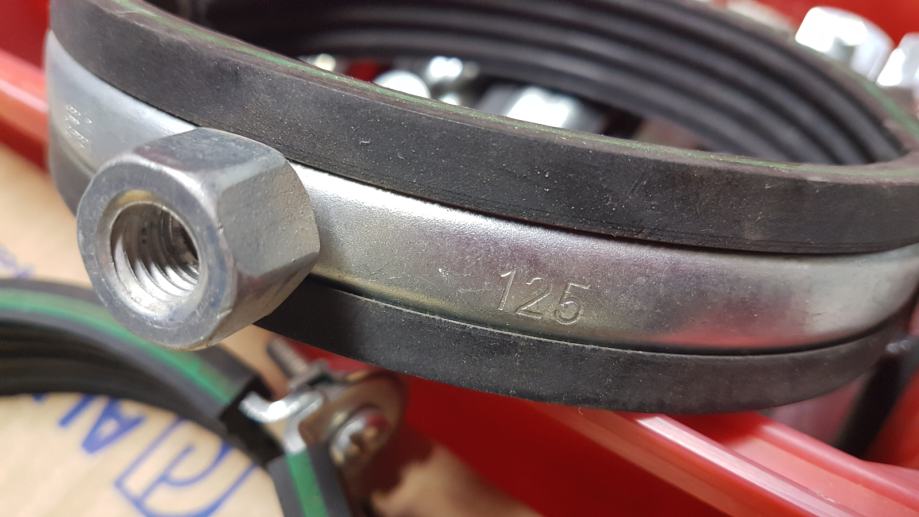 enojna cevna objemka, objemka z gumo, Hilti objemka, Mupro objemka, cevna objemka 60‑64, cevna objemka 102‑116, cevna objemka 121‑127, cevna objemka 160, montaža cevi, vodovod, ogrevanje, cevni sistem, cevi in objemke