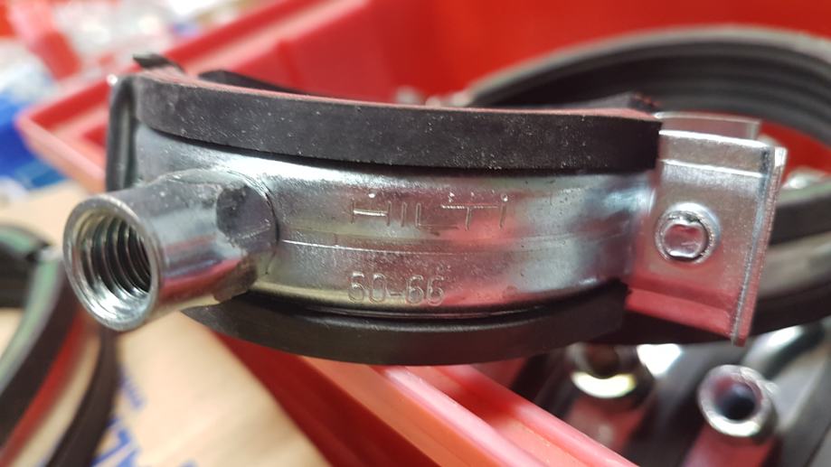 single pipe clamp, rubber pipe clamp, Hilti clamp, Mupro clamp, pipe clamp 60‑64 mm, pipe clamp 102‑116 mm, pipe clamp 121‑127 mm, pipe clamp 160 mm, pipe installation, plumbing, heating system, pipe system, pipes and clamps