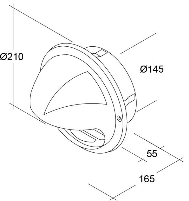 Opremljen z okroglim tulcem za priključitev na zračne kanale, in tesnilom za tesnenje na fasadi