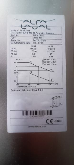 Prodam nov toplotni izmenjevalec. Še zapakiran v škatli. Vsi podatni na sliki.