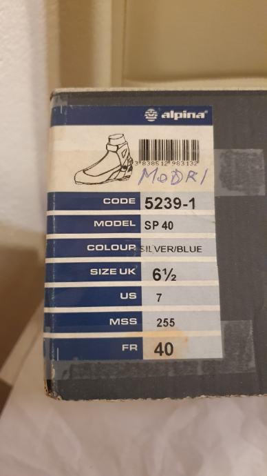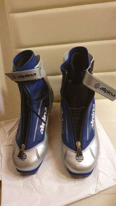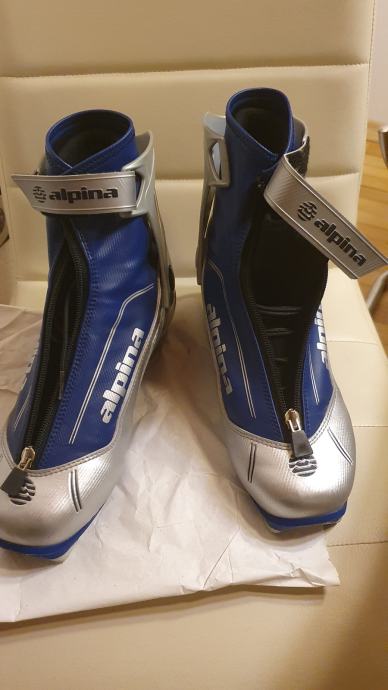 Čevlji Alpina za tek na smučeh za drsalno tehniko št. 40, kot novi, zelo malo rabljeni, modro srebrne barve.