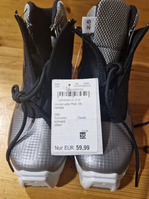 Novi (z etiketo) otroški čevlji za tek na smučeh, številka 35.