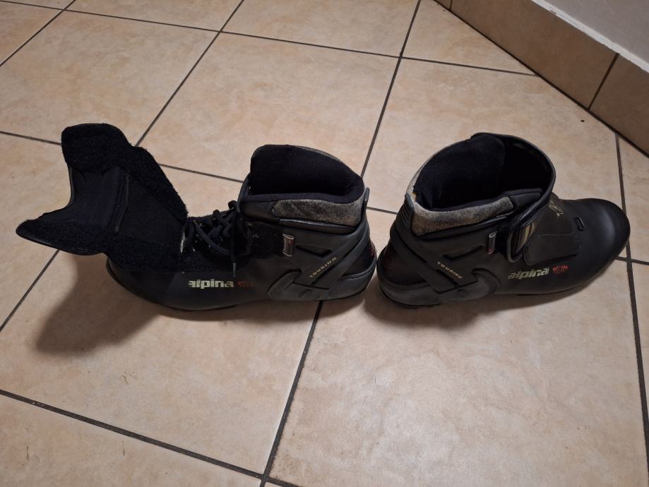 Prodajam rabljene tekaške čevlje Alpina Touring za tek na smučeh. Načeloma gre za univerzalen model uporaben za klasiko in skate.