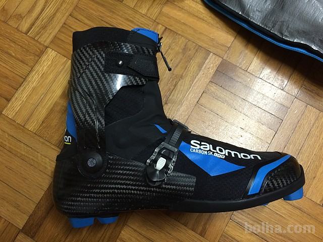 Prodam nove karbonske tekaške čevlje Salomon pro link za skate tehniko. So najnovejši model Salomonovih tekaških čevljev, ki se uporabljajo v svetovnem pokalu. Čevlji so številka 44 in primerni za Rotafelo, Fischer in Salomon pro link vez. Cena novih je 850€.