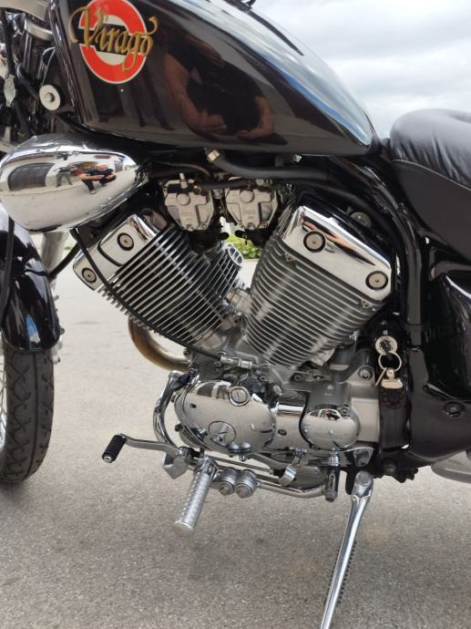 Prodaja se starejši motor čoper Yamaha virago. Zelo lepo ohranjen in garažiran. Cena znaša 3,200€. Zraven je originalni blatnik in stranski kovček. Ali možnost menjave za APN4 z doplačilom ali delavnega štiri kolesnika z reduktorjem. Za vse informacije pokliči.