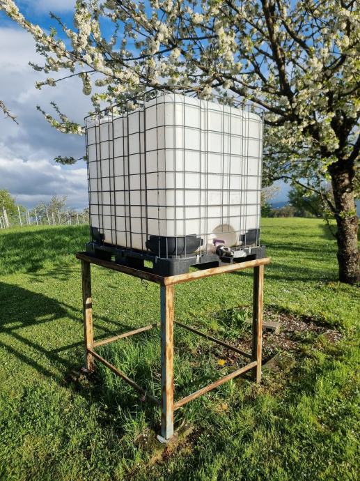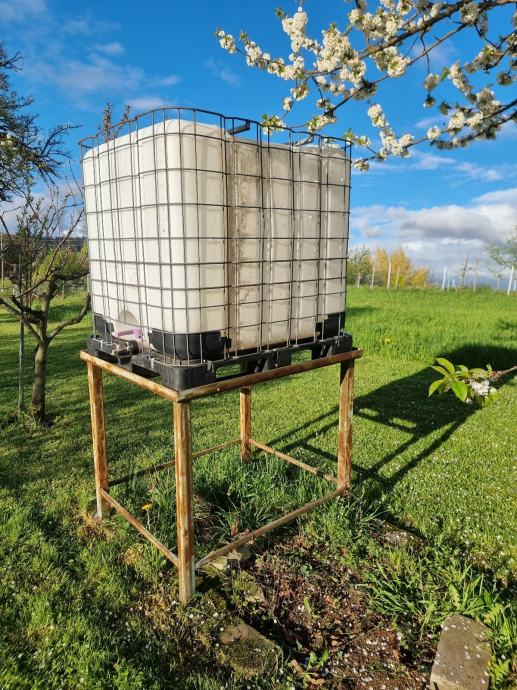 Prodam cisterno 1000 l (skupaj s podstavkom ali posebej). Cena za cisterno je 40 eur.