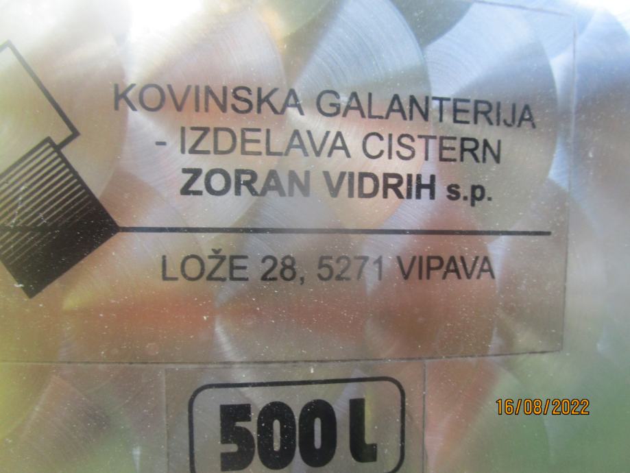 Prodamo cisterno inox 500 litrov.Več na 041 560-603