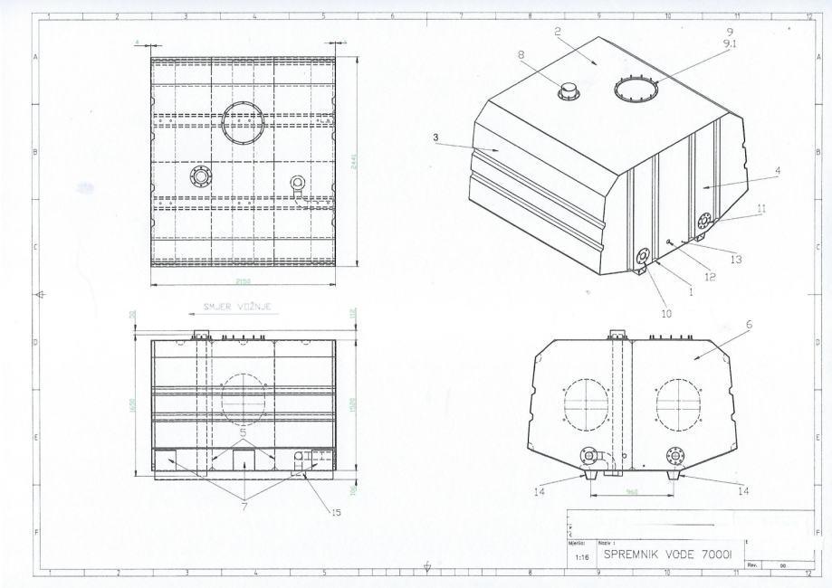 Cisterna je izdelana iz prehrambenega Inox materiala. Prodaja se zaradi storno naročila - razlog covid situacija. Izdelovali so jo dva meseca in se prodaja za ceno porabljenega materiala brez dela. Namenjena je bila za gasilsko vozilo za vodo. Lahko se uporablja za vino, sokove ali druge tekočine.