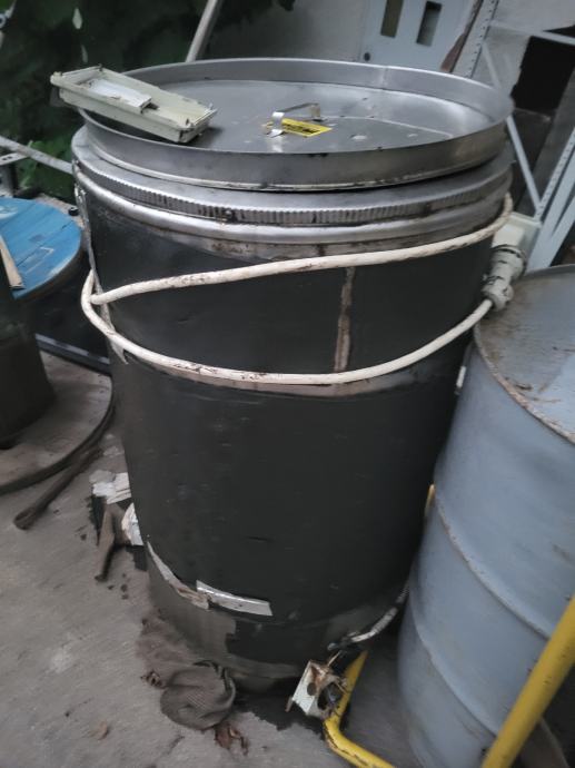 Kotel z dvojnim plaščem, obdan z parafinom da se enekomirno ogreva. Spodnjega izpusta ni. Termostat do 130stopinj.