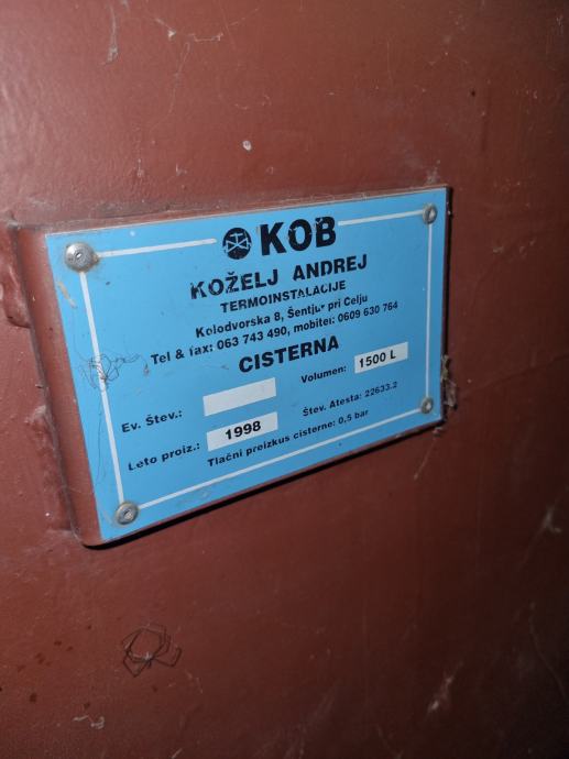 Prodam cisterno za kurilno olje 1500l