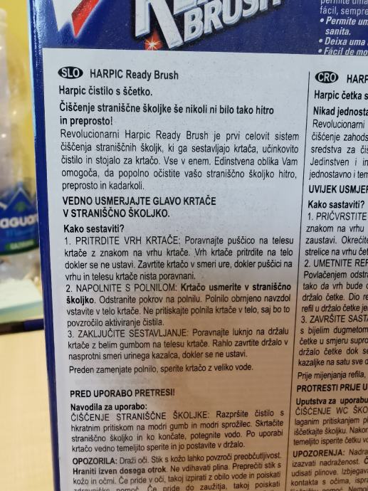Harpic čistilo s ščetko je namenjeno za čiščenje stranišče školjke.
