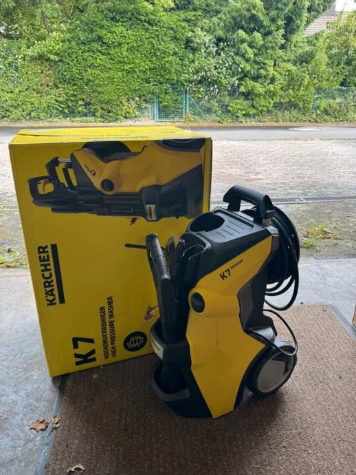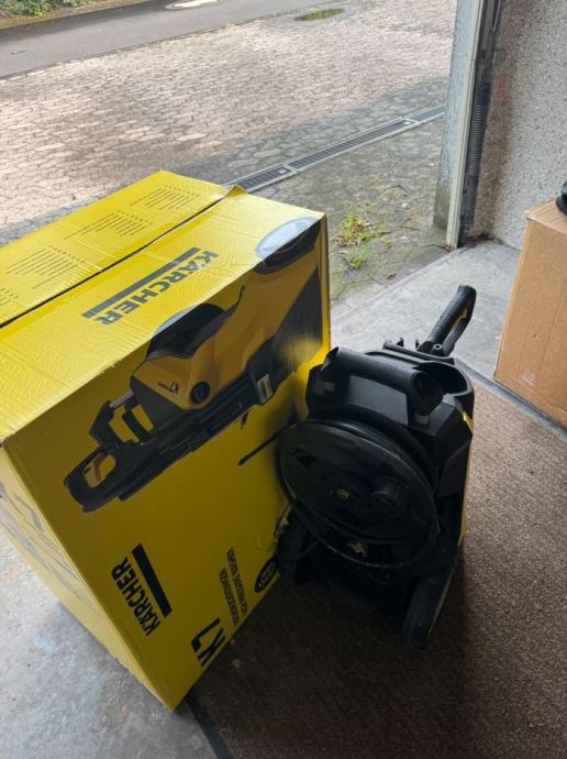 Kärcher K7 Premium – zmogljiv visokotlačni čistilec z dodatki za čiščenje različnih površin in kolutom za cev. V paketu je originalna embalaža in vsa dodatna oprema, kot je prikazano na slikah.