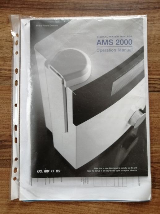 Brezhibno delujoč čistilec in ionizator pitne vode ALKAMEDI AMS 2000, z vso potrebno inštalacijsko opremo, kupljen in montiran s strani pooblaščenega prodajalca Tehnofan d.o.o.. Potrebna je nabava novega filtra z aktivnim ogljem. V trgovini Tehnofan stane 98 eur. Priložena je tudi vsa dokumentacija.