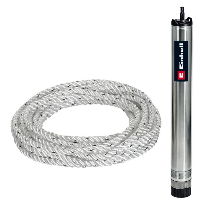Črpalka za globoke vodnjake GE-DW 1255 N-A znamke Einhell s samodejnim delovanjem je zmogljiva črpalka, ki je zasnovana posebej za črpanje čiste vode iz globoko ležečih vodnih rezervoarjev in vodnjakov. Odlikuje jo funkcija samodejnega delovanja, ki napravo samodejno vklopi pri potrebi po vodi in jo nato pri prekinjenem odvzemu vode tudi samodejno izklopi.Z zmogljivim motorjem z 1200 W in 8-stopenjskim rotorskim sistemom črpalka dosega visok tlak črpanja do 5,5 bar. Zaradi tega je izjemno primerna za sisteme za zalivanje vrta in hišno preskrbo z vodo, vključno s splakovanjem stranišč, pralnimi stroji ali za pranje avtomobilov. Maksimalna višina črpanja znaša osupljivih 55 m.Njena kompaktna in vitka izvedba omogoča uporabo črpalke tudi v ozkih ceveh. Največja potopna globina je 19 metrov, kar vam omogoča prilagodljivost pri postavitvi v rezervoar za vodo. Z 22 metrov dolgim napajalnim kablom in priloženo pritrdilno vrvjo je namestitev preprosta in črpalka vsestransko uporabna.Ohišje in sito za umazanijo črpalke sta izdelana iz nerjavnega legiranega jekla, ki zagotavlja dolgo življenjsko dobo. Tlačni priključek je tudi opremljen z vložkom iz nerjavnega legiranega jekla, kakovostni drsni tesnilni obroči pa prispevajo k njeni zanesljivosti. Vgrajena zaščita pred suhim tekom ščiti črpalko pred poškodbami, če je prekinjeno dovajanje vode.Zlahka dostopen cevni priključek s premerom 33,3 mm (1" IG) je na zgornji strani črpalke, vgrajen protipovratni ventil pa preprečuje povratni tok vode. Noga dvigne črpalko za globoke vodnjake nekoliko nad dno rezervoarja za vodo, da čim bolj zmanjša sesanje umazanije in peska.