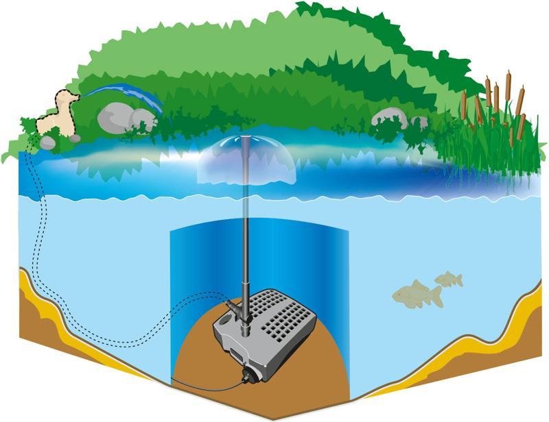 Komplet podvodnih filtrov Heissner Smartline z vgrajenim UVC čistilnikom ribnika (11 W) s hitrostjo dovajanja 2000 l/h 0,00056 m³/s je idealen za ribnike z do 5000 litri vode brez rib (2500 litrov z ribami). Veliko ohišje filtra z mehansko stopnjo filtra zagotavlja izjemno dolge intervale čiščenja. Vse komponente filtra so na dnu ribnika praktično nevidne. Črpalka in UVC čistilnik ribnika imata ločena napajalnika, tako da je mogoče UVC čistilnik ribnika začasno izklopiti. Poleg tega ima komplet nastavljiv priključek za ribnik in teleskopsko dvižno cev s kompenzacijo naklona in regulacijo pretoka. Črpalka ima tudi kompenzacijo naklona in nadzor funkcije UVC. Komplet vključuje tri vodne elemente (kaskada, široka kaskada, zvonec).- Primerna nadomestna svetilka: ZF411-00- Zmogljivost črpalke: 2.000 W- Višina črpanja: pribl. 180 cm- Moč: 45 W vklj. z 11 W UVC- Mere (DxŠxV): 38 cm x 27 cm x 13 cm