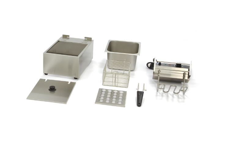 Ta cvrtnik iz nerjavečega jekla z eno ponevjo je primeren za cvrtje in cvrtje krompirčka ter drugih prigrizkov. Odstranljiva 10-litrska posoda vsebuje 6 litrov olja za do 1,2 kg ocvrtega krompirčka. Električni cvrtnik ima odstranljiv pokrov in štiri gumijaste nogice, zato je zelo stabilen. Z nastavljivim termostatom lahko nastavite pravo temperaturo za pripravo hrustljavega čipsa in prigrizkov. Temperatura je nastavljiva od 0 °C do 200 °C.