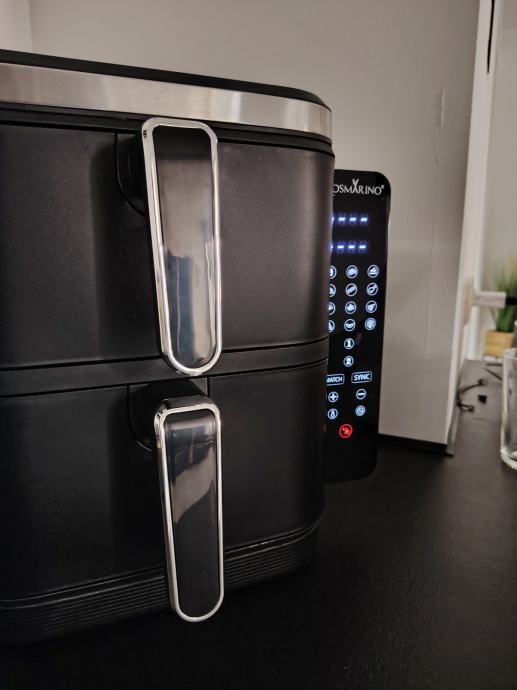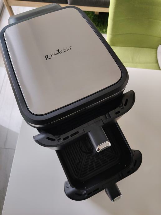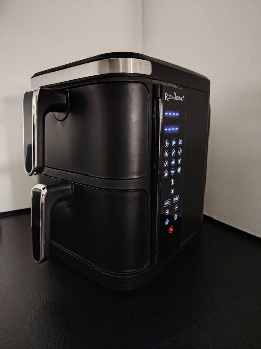 Prodajam nov cvrtnik na vroč zrak, uporabljen samo enkrat, (razlog dvojno darilo), še vedno v garanciji priložim račun. Velikost 10,4l, na dva predala vsak po 5,2l, 12 programov, znamke Rosmarino. Digitalni panel, ki se lahko spravi. Original embalaža. Sedaj na spletu znižana cena 120eur, sicer 200eur.
